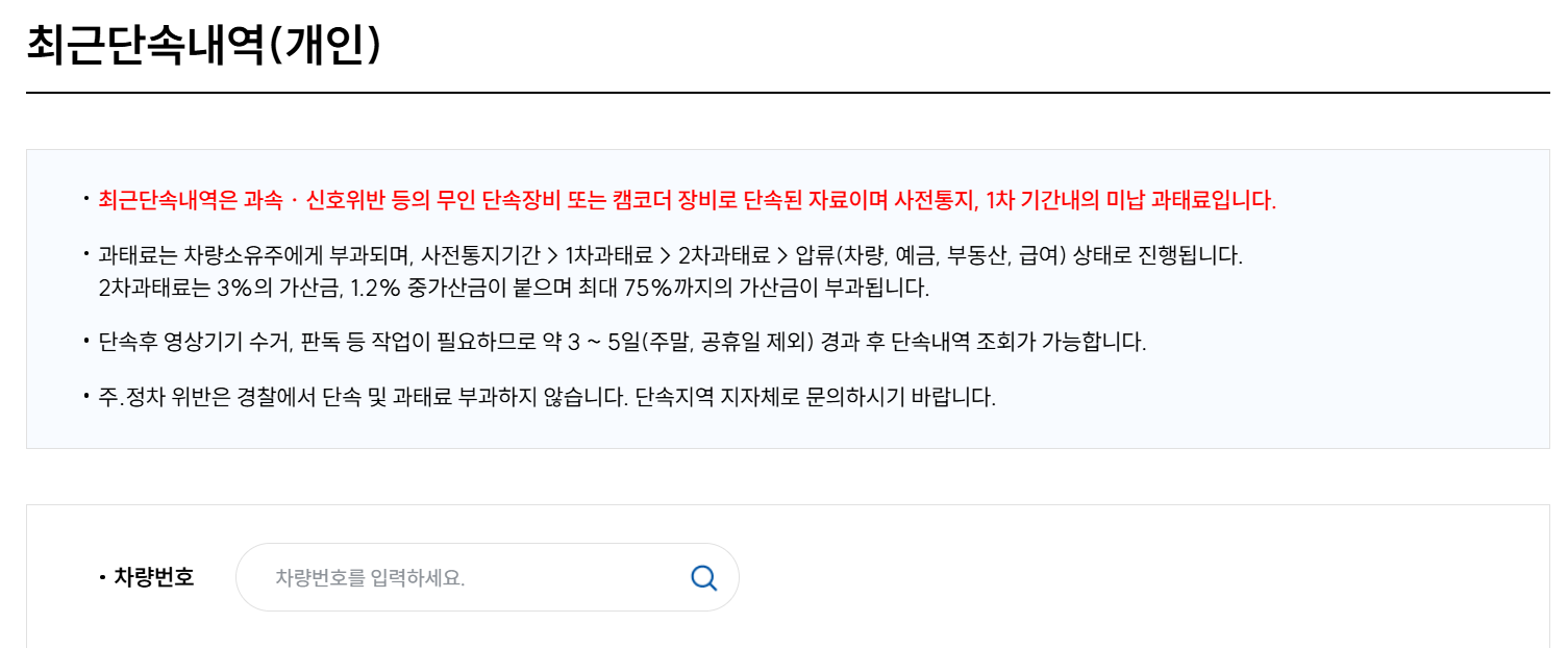 ● 조회 시점: 단속 직후 바로 표시되지 않는 경우가 많습니다. 위반일로부터 2~3영업일, 공휴일이나 주말이 겹치면 더 늦어질 수 있습니다.